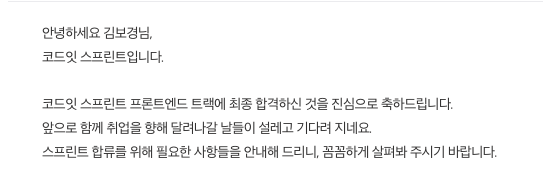 스프린트 과정 합격 통보 메세지를 받고 기뻐하는 것도 잠시..
